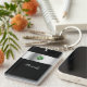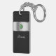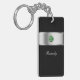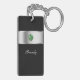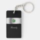 Monogram keychain with classy printed silver monogram emblem you can personalize with any name, initials, or message and printed simulated rhinestones jewel bling, along with black background color you can customize if you want to. Designed as a personal gift or party favor as keychains for women or keychains for girls, in a fun two side acrylic design that lets you carry your keys in style.