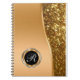 Stylish and classy notebook with simulated gold snd glitter digital background. Inckudes a monogram emblem you can personalize with your monogram initial and is deeigned for keeping notes, writing in recipes, or keeping lists.