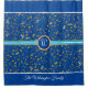 Golden music notes on a solid background contrasted by a slightly lighter shade of the color in a rectangular band at the center. Attached to this band is a Monogram focal point in white text. In addition, the Family Name can also be displayed ( or deleted ) at the bottom center of this piece. White lines also bring highlights to this curtain making it a must have for music lovers everywhere.