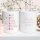 Modern coffee mug for the best Mom ever with crossword puzzle of words that define a mother and a custom message on the back. "Mother" is hidden in these loving and empowering words: Smart, devoted, strong, authentic, generous, caring. Elegant and stylish mom mug with dusty rose pink minimalist typography. Personalize the message on the back for example: "Adored by custom kids names" or "Best Mom ever" and so on. A unique mother appreciation gift for Mom or Mother to be.