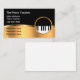 Classy Piano lessons or Piano store editable business cards in an upscale design with gold tone design elements and piano keys graphic in a simple layout. Edit the details to make this a customized design.