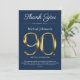 Classy Navy Blue Gold 90th Birthday Thank You Card