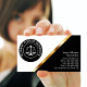 Classy notary public business cards modern design includes an elegant gold looking design element that adds a touch of class in a simple business card design that lets you customize the text and change the black background color if you want to. I designed this business card template as a unique style for a notary, legal document firm, or notary public presented on rounded corner card stock for durability.