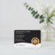 Classy Notary Public themed business cards design created with a gold tone notary seal graphic that says Notary Public and editable text you can customize online. Presented on our larger than standard size rounded corner business card style.
