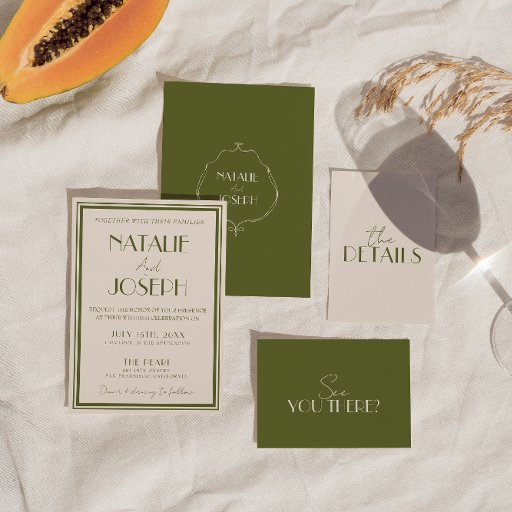 Classy Olive Green Ivory Old Money Wedding Details Enclosure Card