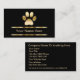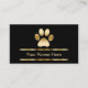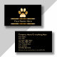 Upscale pet care business cards you can customize with simple classy design that includes a gold printed dog paw print, gold printed line design elements, and classic text layout. Best business cards for themes related to dog grooming, pet grooming, pet salon or kennel, day care or pet sitter.