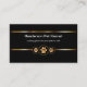 Classy design pet kennel business card template in elegant gold and black with gold colored pet paw prints and your company name featured on the front. Created for a dog kennel, pet care taker, or doggie day care services.