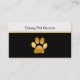 Classy pet service business cards that include a template design with image of a gold looking pet paw print in a modern design with your name or company name on the front and all your contact and business information on the second side with two side printing included. Perfect business card for a veterinarian, pet shop, or pet sitting service.