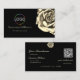 Classy Plain Black Beige Rose Logo and QR Code Business Card