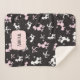 A classy poodle Sherpa blanket this product was created using pink and white poodles on a black background. Customize your name in the pink label. Purchase your blanket today!