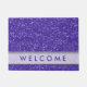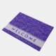 A classy purple glitter welcome door mat to invite your guests in style. The faux purple glitter look doormat has a silver gray band with the welcome words ,that you can customize ,to make it unique and special.