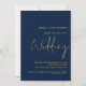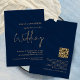 Classy QR Code Navy Gold Script Wedding Invitation