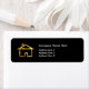 Classy Realtor business address label design with a gold colored house symbol for an upscale look and black background with simple layout you can customize online. Designed as address or return address label stickers for a Realtor, Broker, or any business involved in home services.