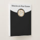 Classy real estate theme Realtor presentation folders designed with a gold tone house emblem and modern layout with text you can customize online. Created with the design elements displayed on both sides designed for a professional Realtor, Broker, Home Services or home builder.