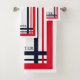 Classy Red and Navy Striped Monogrammed Bath Towel Set