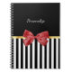 Classy Red Bow Black and White Stripes With Name Notebook