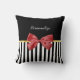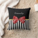 Classy Red Bow Black and White Stripes With Name Throw Pillow