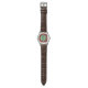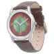 A classy round faced watch for men with a leather band. A unique red and green design with gold colored numerals is the focal point. Great special occasions gift for your partner.