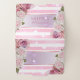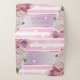Pretty personalized file folders design featuring pink roses on horizontal pink and white stripes with a blank area for your text.