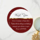 Here is a classy and unique business thank you card with envelopes included on round format card stock in gold, maroon, and white. Includes digitally printed gold divider design element for a touch of class and space on the back of the card for social media page address or any other additional information you'd like to add. Thank your customers, office staff, or management level employees.