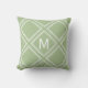 Classy Sage and White Diamond Pattern Monogram Throw Pillow