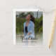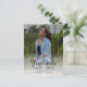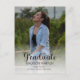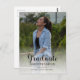 Classy script text "Graduate" two photo graduation announcement design featuring a large photo on front with a smaller square photo on the back and your graduation details below. The front template is set up for your graduating senior's name, class year and school on bottom underneath the script "Graduate". A white semi-opaque background overlays the photo to make the black text at the bottom pop. "Graduate" text style can only be edited by designer, but the color is editable. Composite design by Holiday Hearts Designs (rights reserved) with template placeholder photos provided via Unsplash.