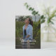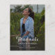 Classy script text "Graduate" two photo graduation announcement design featuring a large photo on front with a smaller square photo on the back and your graduation details below. The front template is set up for your graduating senior's name, class year and school on bottom underneath the script "Graduate". A black semi-opaque background overlays the photo to make the white text at the bottom pop. "Graduate" text style can only be edited by designer, but the color is editable. Composite design by Holiday Hearts Designs (rights reserved) with template placeholder photos provided via Unsplash.
