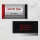 A silver metal look card with a striped gray border artistic design. Easily add your company name and your name or other text on the front of the card. Shown on the front is red with black text and on the back is red text and you can easily change the font style and color as well as the black background. On the back is a smooth plain stainless steel metal look border on a black background which is perfect for adding more information. Personalize with your own text easily both on the front and on the back. A simple, but classic professional looking promotional card great for any business and occupation. Added to this great design is a red satin border on the front for a really unique professional business card.