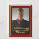Simple yet stylish graduation party invitations feature a gold graduation cap and modern gold text on a maroon background. A classy and elegant look for a high school or college graduate. The back of the invitation is customizable with a photo of the graduating senior, name, school, and class year.