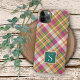 Contemporary pink red, green, orange, and white tartan plaid pattern. With room to customize or personalize with a monogram or initial of your choice. Beautiful, modern, and cool cover for the trend-savvy and art-loving hip trendsetter, artsy motif lover who wants to protect their phone from dust and dirt, wear and tear. This design is available in Apple iPhone 6, 7 and 8 Plus, 10 or X, XR, XS, 11, 12, 13 Mini, 14, 15 Plus, and Pro Max cellphone cases. Show off your style, look fashionable trendy, and feel stylish with a unique design on a mobile device accessory of your choice.