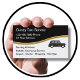 Classy taxi service business card template in an upscale look with a retro taxicab graphic and gold black and white color combination that adds a touch of class. Created for a taxi driver, cab service, car hire, or ride sharing service. Presented on high quality matte finish UV coated business card stock.