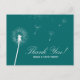 Classy Teal Green Dandelion Blowing Thank You Postcard