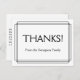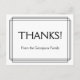 This elegant thank-you postcard design features the message "THANKS!" on the front, along with a customizable message on the back. It could be used to offer thanks to somebody who has done something nice.