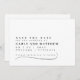 This save the date serves as a beautiful prelude to your wedding. Combining a modern classic black and white color scheme with an elegant decorative swash and small heart on the back. This is a lovely way to make your guests feel special and included in your celebration.