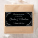 Swirl and flourish wedding party favor water bottle labels. Custom elegant black and white waterbottle stickers with swirly corners. Personalized DIY template with stylish script calligraphy typography. Chic vintage look design with name of bride and groom plus date of marriage. Use spring water as classy table decoration or thank you favor for guests at the party. Customizable background color to match your theme. Thank you for sharing our special day. Also nice for fancy wedding rehearsal dinner, engagement, bachelorette, anniversary, bridal shower etc. Can also be used for wine bottles.