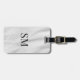 Elegant Classy Minimal White Leather Monogram Initials Luggage Tag. Features faux leather image background.
