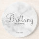 featuring personalized bridesmaid's name in modern calligraphy font style with title and wedding date in modern sans serif font style n white marble background.