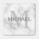 Classy White Marble Personalized Monogram and Name Coaster Set