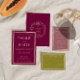 We ordered this invitation first as just a sample because I loved the color combination. We ordered many other samples invitations (thanks to Zazzle Black). But ultimately ended up coming back to this (our first) because is simply was exactly what I was looking for. I actually ended up using the color pallet for our entire wedding! We had an outdoor ceremony and inside reception and these invitations were the perfect introduction for our guests to the type of event we were planning. Not too fancy but also not a casual evening wedding. The colors were vibrant and the paper was just the right amount of weight. We ordered the matching RSVP cards, the mauve envelopes with return address printed on the back, the belly bands to tie it all together, and the menus. Postage to send all this out was only .78 each. We highly recommend these invites and this seller was very responsive, our orders went out very timely. Thank you so much! We were so happy with all your paper products! I was extremely satisfied with the colors of our invitations. I couldn't have been happier with the print!