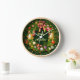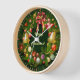 Decorate your home this holiday season with this classy wall clock featuring a gorgeous Christmas wreath with holly pine cones, luxurious ornaments, golden bells, silk ribbons, red bows, and poinsettias. You could also customize it with your own wording as a present for someone special.