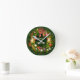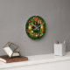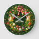 Decorate your home this holiday season with this classy wall clock featuring a gorgeous Christmas wreath with holly pine cones, luxurious ornaments, golden bells, silk ribbons, red bows, and poinsettias. You could also customize it with your own wording as a present for someone special.