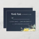 Classy yellow flowers greenery navy blue wedding RSVP card