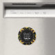 Birthday magnet with an elegant and stylish pattern. Pretty yellow sunflowers and green leaves surrounded by delicate gold chains. Black background. A black circle with a faux gold inner border layered over top with your text inside.
