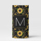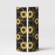 Candle with an elegant and stylish pattern. Pretty yellow sunflowers and green leaves surrounded by delicate gold chains. Black background. A black square with a faux gold border layered over top with your monogram initial inside.