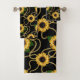 Classy Yellow Sunflowers Stylish Pattern on Black Bath Towel Set
