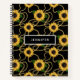 Classy Yellow Sunflowers Stylish Pattern on Black Notebook