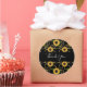 Thank you stickers with an elegant and stylish pattern. Pretty yellow sunflowers and green leaves surrounded by delicate gold chains. Black background.
