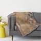 A quality printed throw has its advantages. This is a much finer weave throw than its loopier cousins, and though lighter, it is worth the investment for custom room accessorizing. The back is much prettier than the typical brown, and the fringe on the long sides very vivid, the selvage nicely done. Before photographing, I washed the throw in cold water, delicate, with a thicker woven throw the same size. On tumble dry low, this throw was dry in half the time as the other. This is a very practical quality if you use throws for furniture covers or to wrap up in frequently. The sleekness of the fabric makes it a great layer for accenting or protecting without the feeling of sitting on too much stuff. Perfect for napping or when you feel a light chill coming on. The color printing is beautiful and on this fabric, matched the design and color of my Photoshop image. This is an advantage for blending room fabrics and colors. The fringe on the short sides prints the colors from the design image and therefore varies from the side fringe. I streaked a white fractal line through the plaid pattern to give the illusion of weaving. This printed as crisp as an illusory thread, and put some white in the short side fringe, showing another advantage of print vs loomed- for artistic purposes, line lines, detail, and color integrity can be planned and preserved. My loomed throws have color limitations and more of a needlepoint texture. Print throws reproduce an exact image. The throw felt a little stiff straight out of the package, but this went away in the first delicate wash. Of course I searched the wash water for ink or bleeding and there was none.