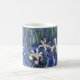A beautiful classic flower mug featuring irises, painted by the French impressionist painter Claude Monet.