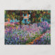 Surprise your family and friends with a colorful classic postcard featuring irises in a garden, painted by the French impressionist painter Claude Monet.